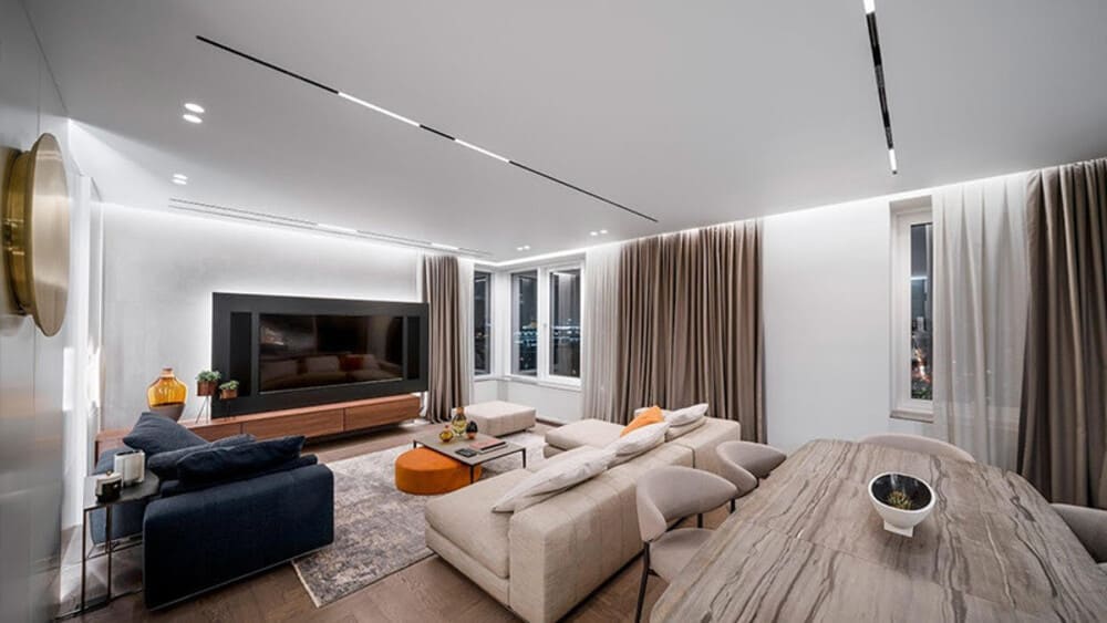 Эти системы помогают организовать разное освещение: общее для всей комнаты и локальное для выделения отдельных деталей интерьера. Одни светильники обеспечивают мягкое равномерное освещение, а другие – направленный свет, который акцентирует внимание на интересных элементах.